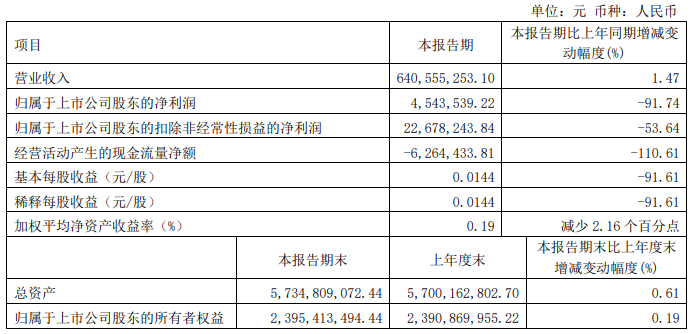 4月30日,天润乳业发布2024年一季度报告,实现营业总收入6.41亿元,同比增长1.47%,归母净利润454.35万元,同比下降91.74%。
