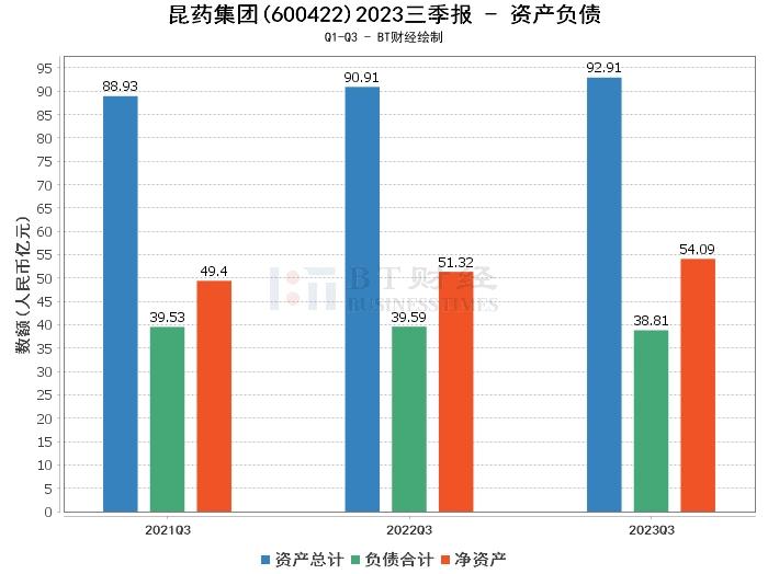 在资产负债方面,昆药集团2023年三季度末的总资产为92.91亿元,相比上年度末的94.32亿元有所下降。负债总额为38.81亿元,较上年度末的42.89亿元减少。公司的净资产为54.09亿元,较上年度末的51.43亿元有所增加。资产负债率为41.78%,较上年度末的45.48%有所下降。