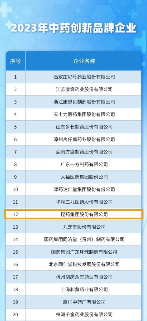 12月8日-10日,以“品牌引领,传承创新,推动中药产业高质量发展”为主题,由中国中药协会主办的2023中国中药产业高质量发展大会暨第四届中国中药品牌建设大会在北京召开。会议重磅发布了2023年度中药行业品牌榜单,昆药集团荣登“中药创新品牌企业”和“中成药工业TOP100”两项榜单。