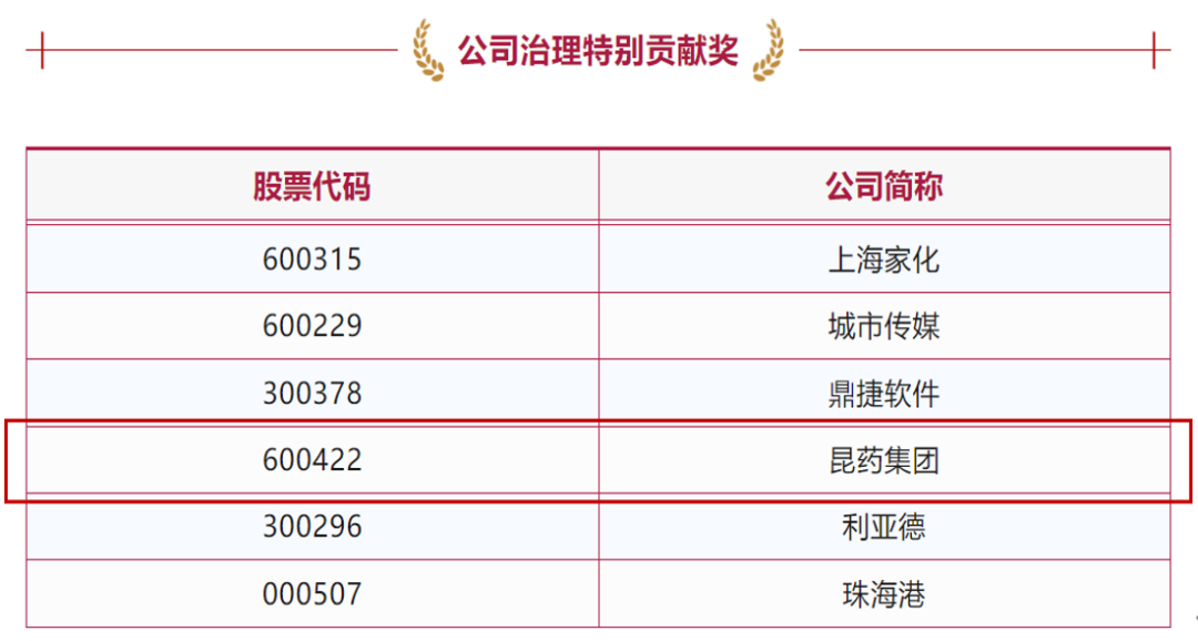 近日,由《董事会》杂志主办的第十九届中国上市公司董事会“金圆桌奖”公司奖正式发布,昆药集团凭借在公司治理、三会运作等方面的深耕与努力得到了市场的高度认可,荣获“公司治理特别贡献奖”。