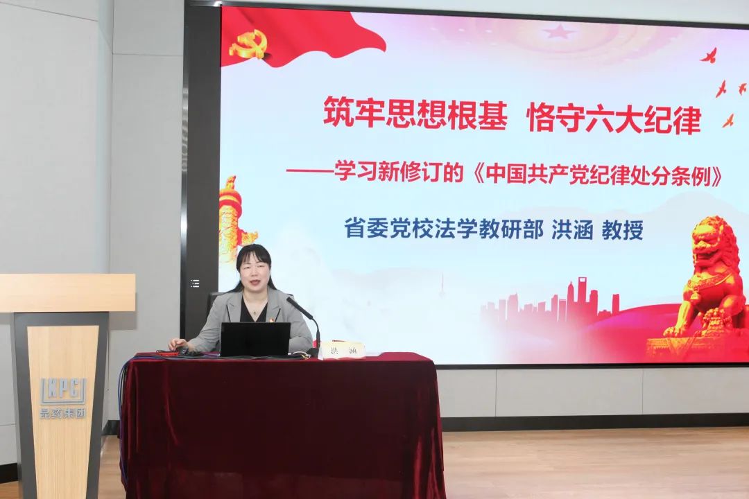 会议的第二阶段,昆药集团邀请到了中共云南省委党校(云南行政学院)法学教研部主任、教授洪涵为昆药全体党员、干部进行《中国共产党纪律处分条例》专题辅导讲座。洪涵教授以“筑牢思想根基