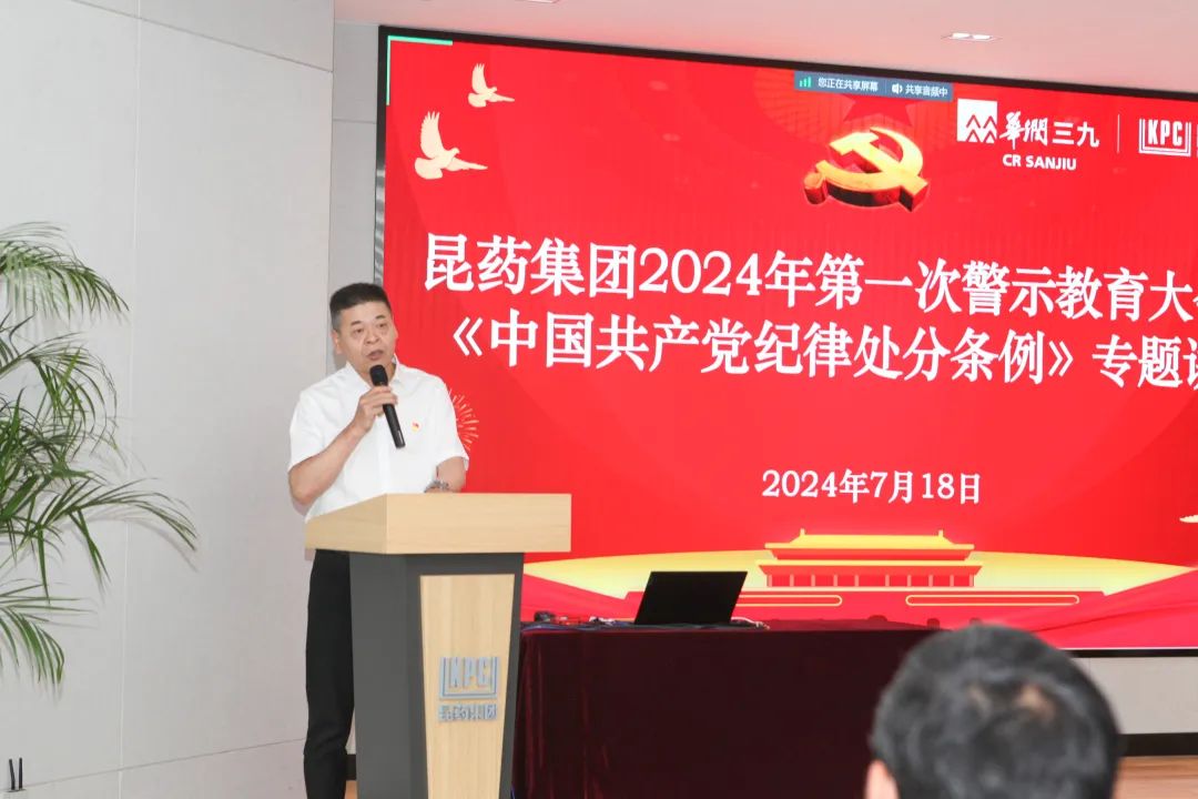 7月18日上午,昆药集团召开2024年第一次警示教育大会暨《中国共产党纪律处分条例》专题讲座,深入贯彻党的二十大、二十届中央纪委三次全会精神,落实党中央关于在全党开展党纪学习教育的决策部署和华润集团、华润三九2024年党风廉政建设和反腐败工作会议、警示教育大会要求,持续推进昆药集团全面从严治党向纵深发展。会议分两个阶段进行,第一阶段召开昆药集团2024年第一次警示教育大会,第二阶段举办《中国共产党纪律处分条例》专题讲座。
