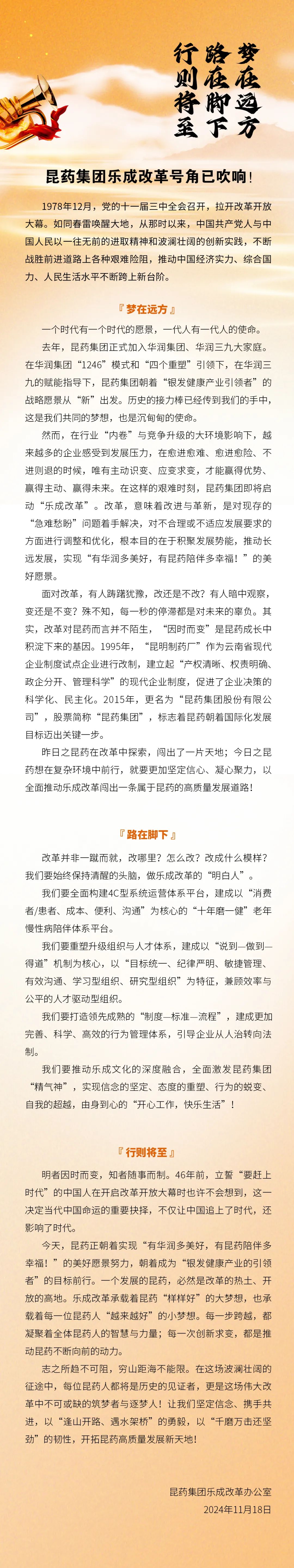 梦在远方,路在脚下,行则将至——昆药集团乐成改革号角已吹响!
