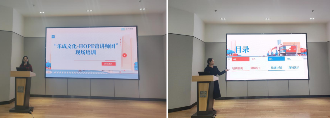 2025年1月21日,公共事务中心公文机要组在管理中心青蒿厅举办了“乐成文化—HOPE馆讲师团”现场培训,来自公司五大板块优秀的讲师们参与了本次培训。本次培训由讲解示范、讲解技巧、讲解礼仪、讲解问题答疑四部分组成,通过理论学习与现场教学相结合的方式,全方位提升讲师团的讲解能力,确保讲师们能够更深入全面地了解讲解要求,为讲解工作筑牢良好根基。