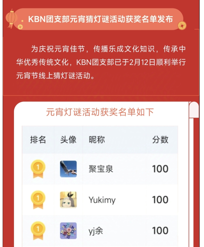 KBN团支部举办“欢乐元宵,智趣猜谜”线上主题团日活动
