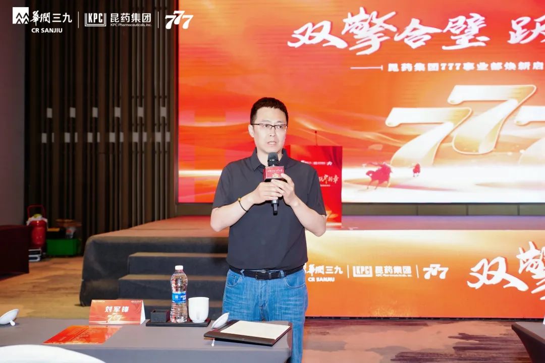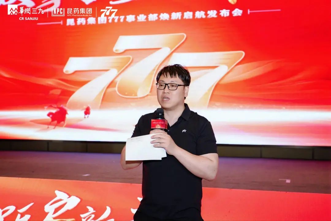 7月7日下午的 777 事业部成立大会上,昆药集团党委书记、副董事长、总裁颜炜率先发表导入发言,他表示“希望大家能沉下心来,认真梳理当下的现状、明确未来的方向”,以“十五小时的努力追赶十小时的对手”,推动新的777事业部获得更好的发展。