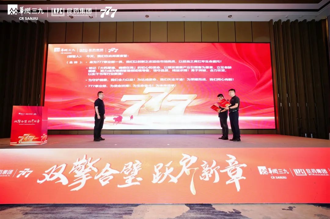 7月7日,以“双擎合璧跃启新章”为主题的777 事业部焕新启航发布会在云南昆明隆重举行。为全面落实昆药集团银发经济战略,践行“大药厚德、痌瘝在抱”的企业使命,推动 777事业部与华润圣火深度融合,全力以赴朝着“银发健康产业引领者、老龄健康—慢病管理领导者”的方向迈进,以“守护银发、同心启航”的信念,开启三七产业发展的新篇章!华润三九总裁、昆药集团董事长吴文多,昆药集团党委书记、副董事长、总裁颜炜携领导班子共聚一堂,共谋发展新篇章。