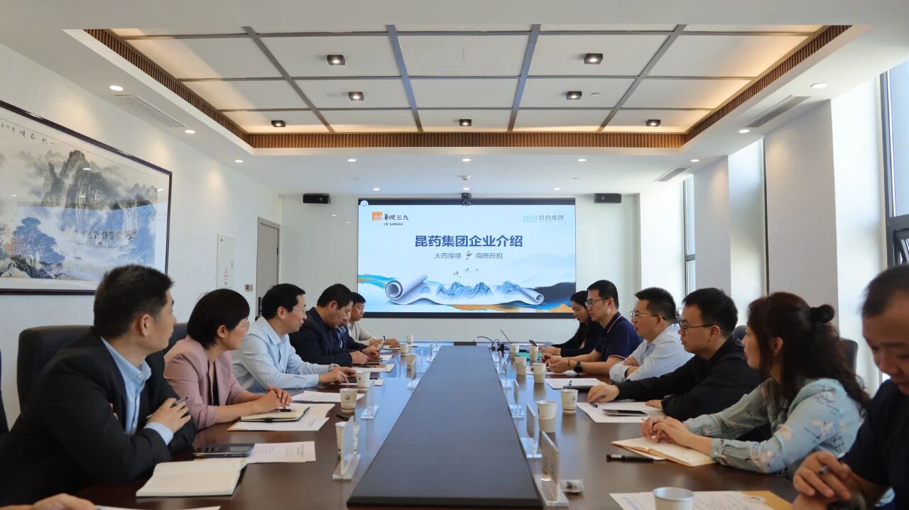 华润集团创新与学习发展中心副主任张建伟、昆药集团高级副总裁刘军锋携市场部总经理黄渊,昆药集团市场与医学总监赵翀,药政副总监朱颖,晋冀豫销售大区总经理刘宁共同参与此次产学研合作会谈。