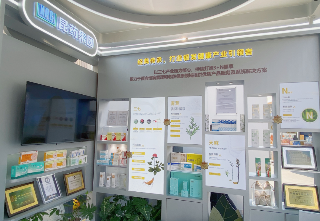 昆药集团展位精心策划,聚焦"三七、青蒿、天麻"三棵草+N棵草及"精品国药"两大核心主题,巧妙融合讲解演示、视频展示、荣誉陈列、产品实物、非遗技艺"搓大蜜丸"科普互动等多元化形式,生动诠释昆药"打造银发健康产业引领者"的美好愿景。