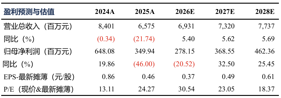 盈利预测与投资评级:考虑到公司2025年公司面临院内集采执行落地晚于预期,院外零售药店整合出清等多方面不利因素,导致整体业绩承压,我们将公司2026-2027年归母净利润预测由6.2/7.4亿元下调至2.8/3.7亿元,同时预测公司2028年归母净利润为4.6亿元,当前市值对应PE为31/23/18X.。同时考虑到公司长期规划明确,银发经济、精品国药战略布局持续深化,长期发展空间向好,维持“买入”评级。