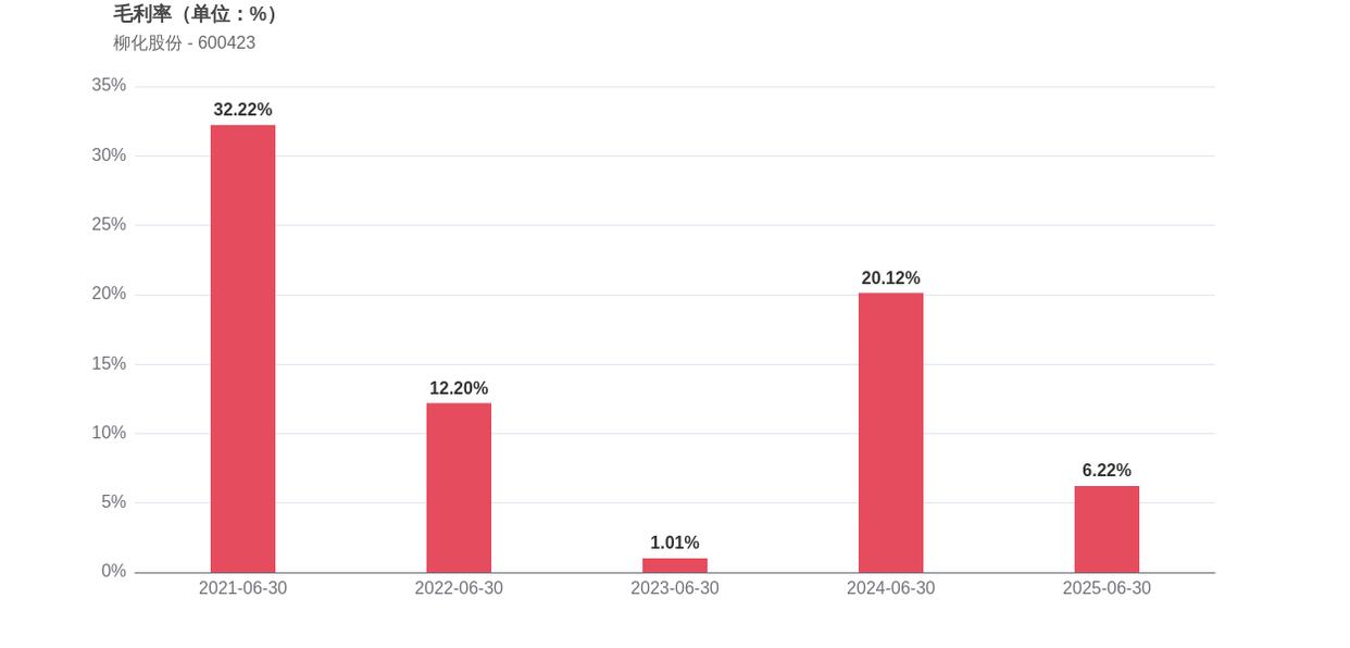 从反映盈利质量的指标来看,柳化股份的盈利能力大幅削弱,净利率由2024年上半年的20.20%下滑至5.06%,毛利率从20.12%下滑至6.22%,净资产收益率同比下降2.39个百分点至0.64%。
