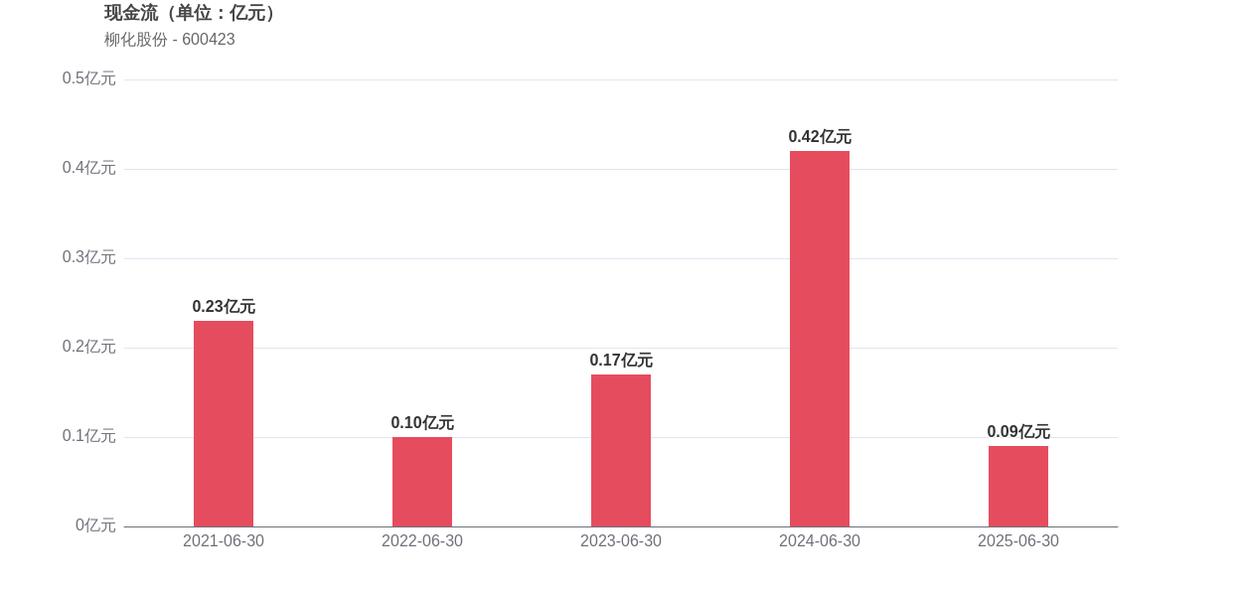 在经营稳健性方面,柳化股份面临运营效率下降的挑战,存货周转天数增至12.22天,表明库存管理有待改善。经营活动产生的现金流净额为0.09亿元,较2024年同期的0.42亿元下滑78.57%,显示出现金流状况恶化。此外,2025年上半年的资产负债率为8.54%,同比增长3.60个百分点,这意味着公司债务负担有所加重。