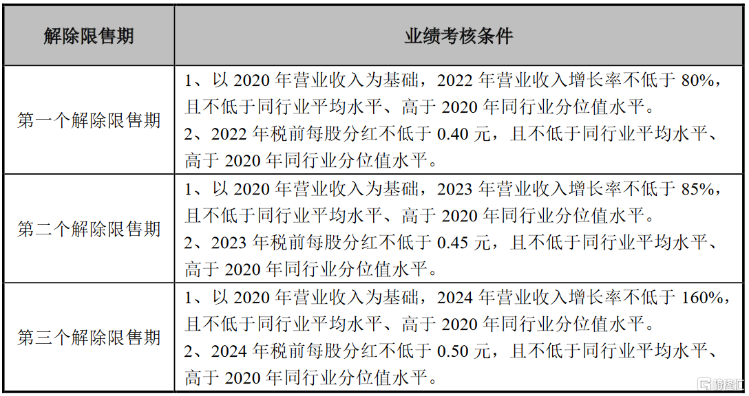 该计划首次及预留授予的限制性股票解除限售的业绩条件为: