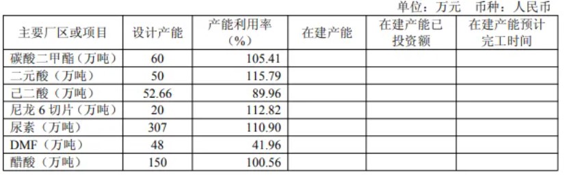 作为全球最大的碳酸二甲酯供应商,公司所处的碳酸二甲酯行业呈现明显过剩态势,国内产能达400万吨,产量仅约215万吨,平均开工率54%,年末新建装置集中投产导致供应增加,产品价格触顶回落,即便公司占据行业领军地位,也难以完全摆脱行业供需格局的影响。尼龙6行业近两年产能快速扩张,已进入供需失衡格局,部分老旧装置长期停车,开工率持续下滑;己二酸、尿素行业同样处于产能过剩状态,其中尿素有效产能7579万吨,表观消费量6760万吨,过剩压力显著。此外,作为全球最大的DMF(二甲基甲酰胺)制造企业,公司所处的DMF行业也面临供需失衡难题,国内产能180万吨,产量81万吨,开工率仅45%,尽管下游需求有一定增长,但供需失衡局面未得到有效缓解。