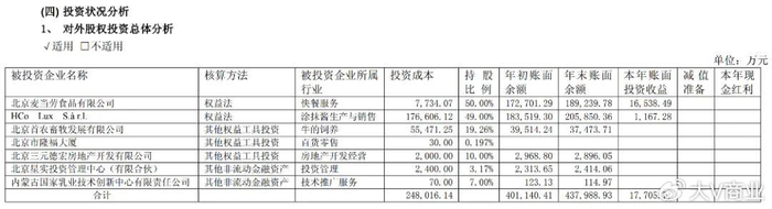 其中主要是对联营公司和合营企业的投资收益,半年报中记录了更具体的数字,其中北京麦当劳上半年投资收益1.65亿元,HCo投资收益1167万元。