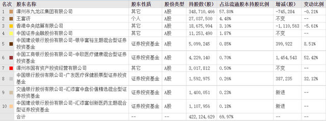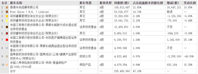 片仔癀三季报前十大流通股东,来源:Choice数据