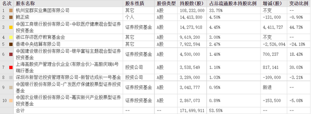 公司三季度前十大流通股东中,银华富裕大幅增持至262万股。而二季度增仓或新进的广发医疗保健、华泰柏瑞品质成长、中欧医疗健康等基金则因持股数低,已退出前十大流通股东。
