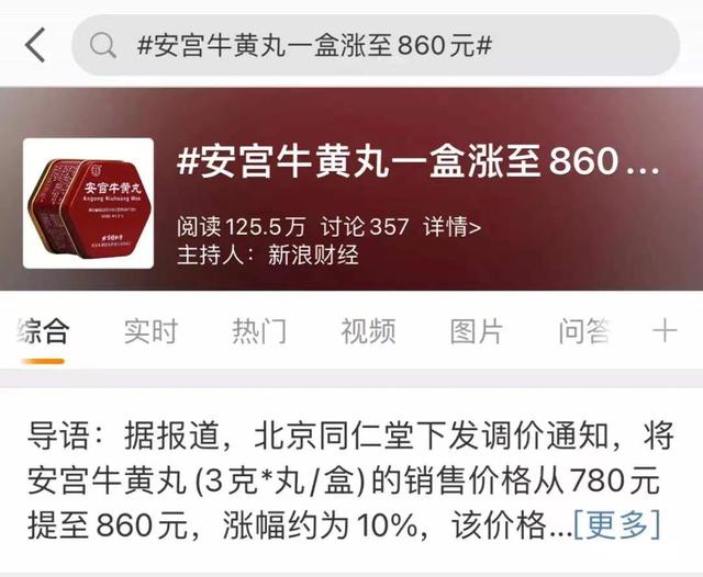 此前,北京同仁堂下发通知,将安宫牛黄丸(3克*丸/盒)售价从780元/盒提至860元/盒,涨幅约为10%,该价格从12月1日开始执行。据了解,这已经不是安宫牛黄丸第一次提价了,早在2012年,一丸的价格还在380元,时至今日价格已呈现翻倍增长,据药店工作人员透露,此次涨价前曾出现一晚售出1000多丸的情况。