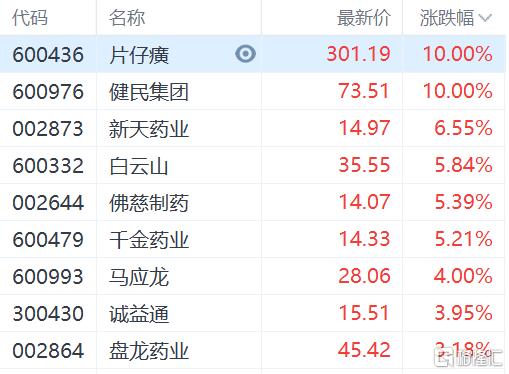 今日,港A股中药板块活跃,截止发稿,A股片仔癀、健民集团双双涨停,新天药业涨655%,白云山、佛慈制药、千金药业涨超5%,马应龙、诚益通、盘龙药业等涨纷纷跟涨。另外,中医药ETF张1%。