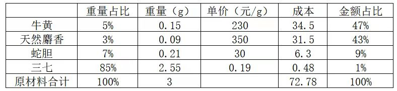 在成本端,根据公开资料,片仔癀的用料包括麝香、牛黄、蛇胆和三七四味中药,均为稀缺名贵中草药。据中药材天地网数据显示,2020年1月1日至2023年5月1日期间,天然牛黄的价格从43万元/公斤上涨到80万元/公斤,涨幅明显,而公司近三年片仔癀锭剂的终端零售价均未调整。