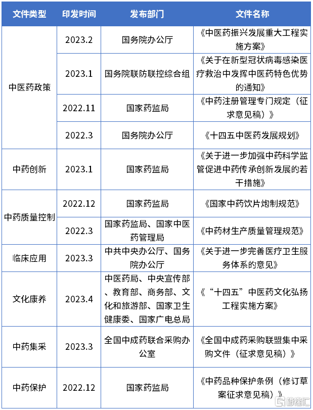 2023年2月,国务院办公厅印发《中医药振兴发展重大工程实施方案》,明确推进中医药振兴发展的基本原则,统筹部署了8项重点工程和26个建设项目。