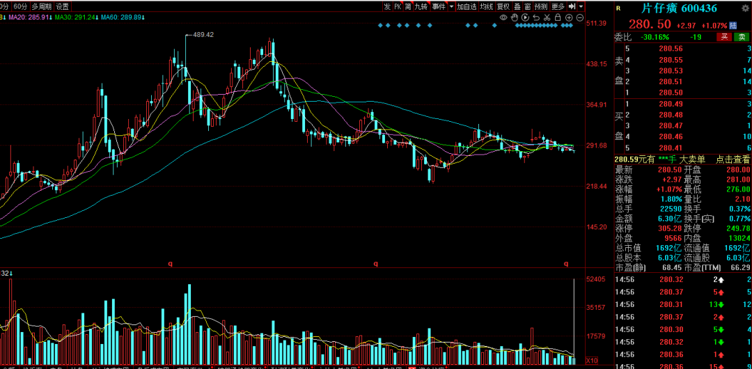 数据显示,2021年12月,也正是林纬奇接任片仔癀董事长之时,片仔癀的股价在480元左右,到现在280元,累计下跌近40%,市值蒸发一千多亿。