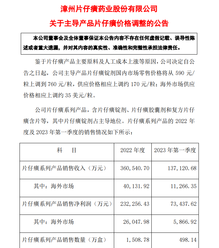 值得一提的是,时隔三年,片仔癀再涨价。