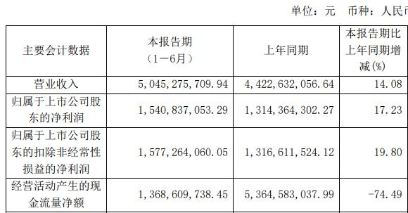 8月18日晚,片仔癀披露2023年半年度报告,报告期内,公司实现营业收入50.45亿元,同比增长14.08%;归属于上市公司股东的净利润15.41亿元,同比增长17.23%;归属于上市公司股东的扣除非经常性损益的净利润15.77亿元,同比增长19.80%;经营活动产生的现金流量净额13.69亿元,同比减少74.49%。