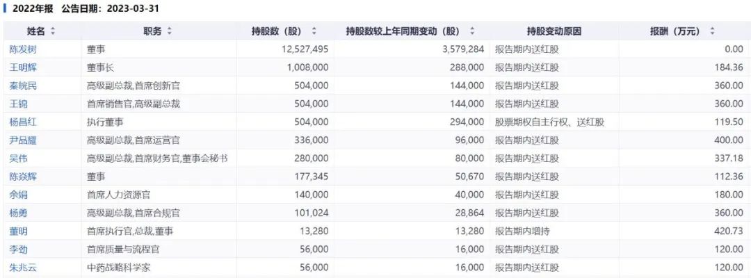 而同期云南白药的董监高人员年薪100万元起步,此外持有公司股份可参与分红送股。