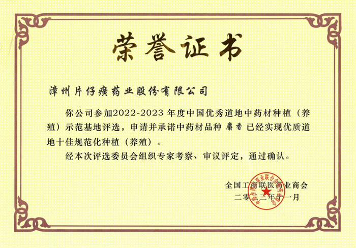 11月8日至9日,由全国工商联医药业商会主办的第二届泰山医药论坛在济南召开。论坛以医药行业“全产业、大平台、深融合、共发展”为主题,聚焦医药健康产业发展,共话医药行业当下面临的机遇与挑战。来自全国医药健康产业1000多人出席此次论坛,片仔癀药业获评2022-2023年度优质道地中药材十佳规范化种植(养殖)基地荣誉。