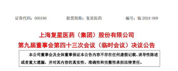 月初,复星医药发布高管人员辞任公告。内容显示,原复星医药执行总裁梅璟萍女士因到年龄退休,向公司董事会申请了辞去执行总裁职务。梅璟萍女士自 2024 年 1 月 1 日起不再担任公司执行总裁职务。
