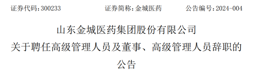 金城医药1月18日晚间发布公告称,傅苗青先生因个人原因申请辞去公司董事、副总裁及第六届董事会战略委员会委员职务。傅苗青先生辞职后仍担任公司控股子公司广东金城金素制药有限公司董事长。公司董事会同意聘任王辉先生、张希诚先生为公司副总裁,任期自本次董事会审议通过之日起至公司第六届董事会任期届满之日止。