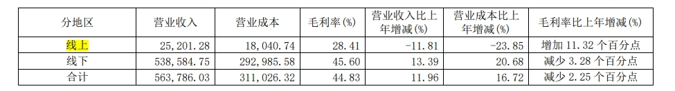 同时,以医药为主要业务的片仔癀主要依靠线下药店等零售渠道盈利,2024年上半年其线上营业收入2.52亿元,同比下降11.81%,虽然毛利率有所增加,但相较于其线下营业收入仍占比较小。