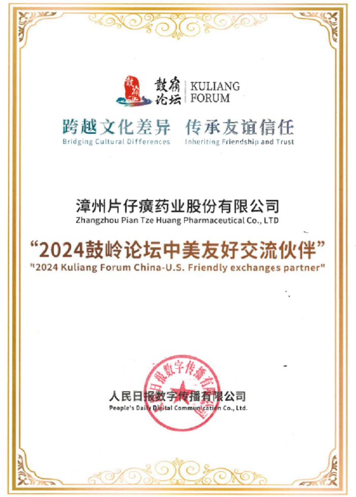 主题为“跨越文化差异传承友谊信任”的2024鼓岭论坛在北京举行,片仔癀公司董事长林志辉受邀担任“中美友好合作故事”作品征集活动启动仪式嘉宾,副总经理张泽修在圆桌对话中围绕“放眼中美经贸合作机遇与挑战”议题展开深入探讨。片仔癀公司被授予“2024鼓岭论坛中美友好交流伙伴”荣誉称号,旗下产品作为论坛伴手礼和会场指定用水在活动现场亮相。