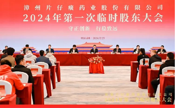 片仔癀公司召开2024年第一次临时股东大会,董事长林志辉主持会议,公司管理层与参会股东围绕未来发展战略、研发创新体系等进行充分沟通,进一步明晰公司前进方向,增强股东信心,为公司在新征程上稳健前行、实现可持续发展筑牢坚实根基。