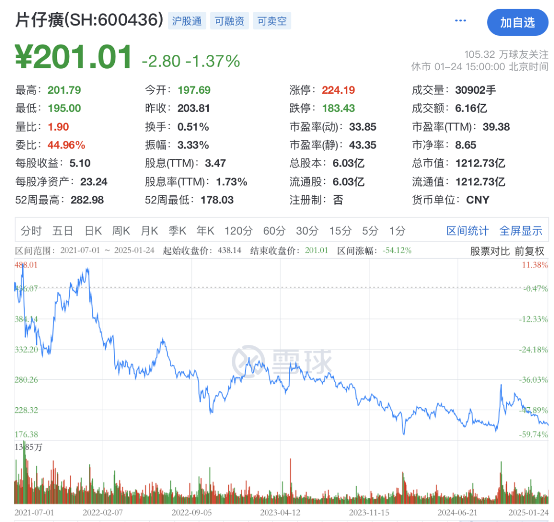 2024年业绩增速放缓,第四季度更是营收净利双降,“药茅”片仔癀正进入“降速”时刻。