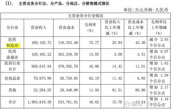 下面,根据公司四块业务,捋一捋自IPO以来的发展情况,即医药制造业、医药流通业、化妆品和日化行业、其他(食品)。