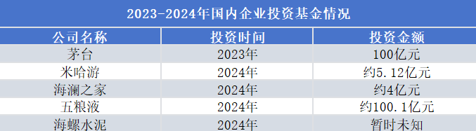 到了2024年,米哈游、海澜之家、五粮液等头部公司也纷纷跟进,或是大举出资,或是设立机构,出手十分阔绰!