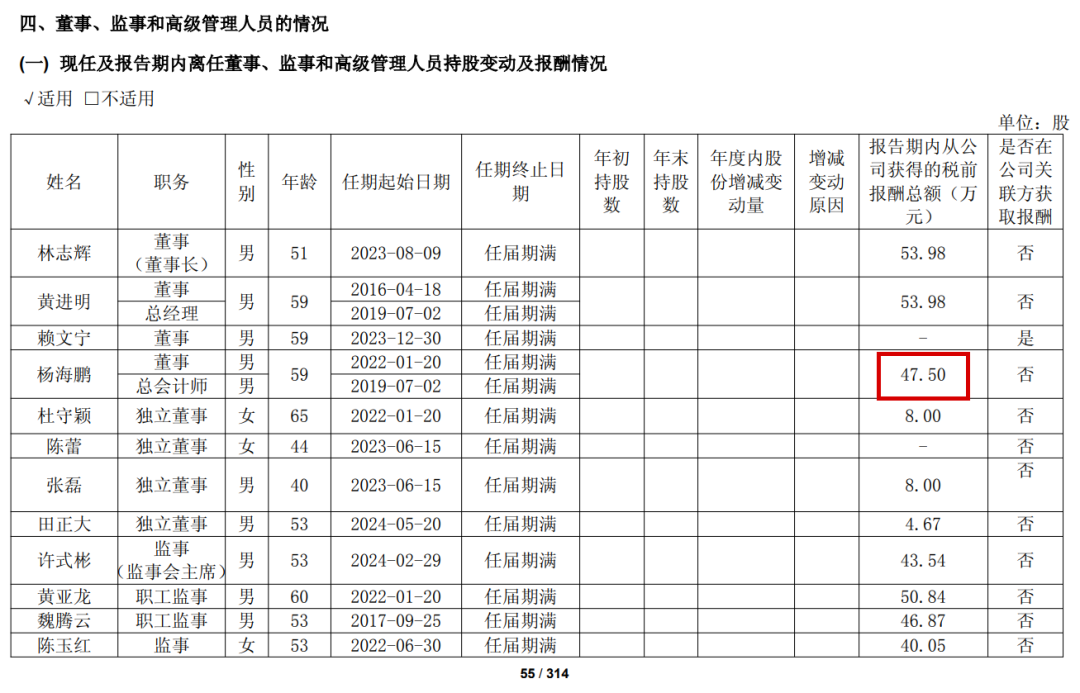 2024年度,杨海鹏先生薪酬为47.5万元。