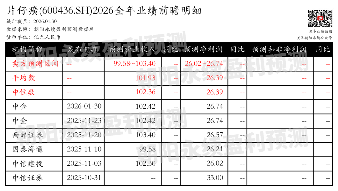 预测营业收入99.58~103.40亿元;预测净利润26.02~26.74亿元。