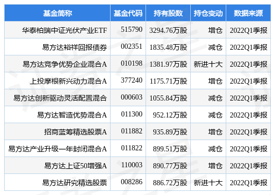 其中持有数量最多的基金为华泰柏瑞中证光伏产业ETF,目前规模为149.71亿元,最新净值1.67(7月1日),较上一交易日下跌1.3%,近一年上涨27.35%。该基金现任基金经理为李茜李沐阳。