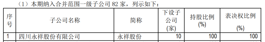通威股份2021年年报显示,四川永祥股份有限公司为通威股份100%持股的一级子公司。