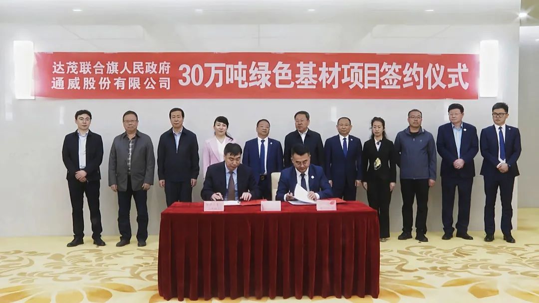 5月9日上午,达茂旗人民政府与通威股份有限公司举行30万吨绿色基材项目签约仪式。市政府副市长雷殿军,旗委副书记、旗长石钟琴及市、旗两级有关领导出席签约仪式。