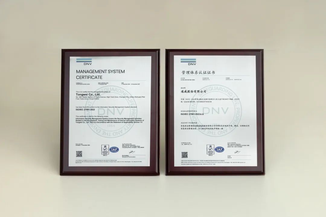 作为光伏行业的知名企业,通威股份始终将保障企业及客户的信息安全作为自身运营的重要责任。此次认证,不仅是对通威股份信息安全管理能力的国际认可,更是公司践行可持续发展(ESG)战略的重要里程碑,进一步增强了通威在投资者和消费者心中的信誉,为通威的可持续发展和全球市场的拓展注入强劲动能。
