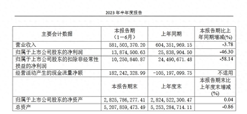 24日盘后,瑞贝卡发布2023年半年度报告。上半年,公司实现营业收入5.82亿元,同比减少3.78%;归属于上市公司股东的净利润1387.45万元,同比减少46.30%;归属于上市公司股东的扣除非经常性损益的净利润1025.08万元,同比减少58.14%。