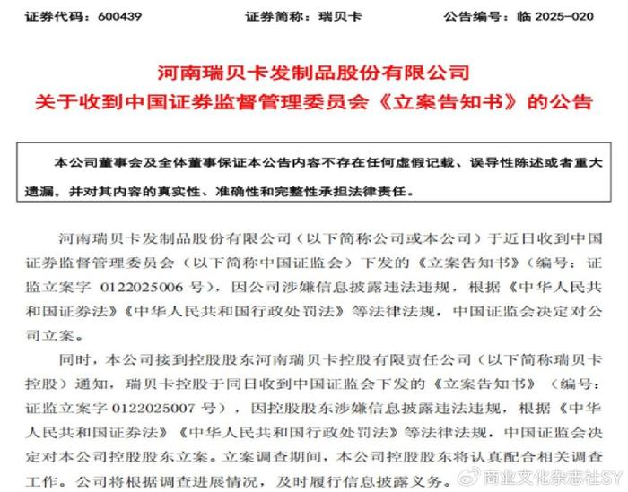 此次立案直指瑞贝卡长期存在的信披顽疾。根据《立案告知书》,证监会已锁定公司及控股股东在资金往来、关联交易等关键信息披露上的重大瑕疵。值得警惕的是,这仅是冰山一角: