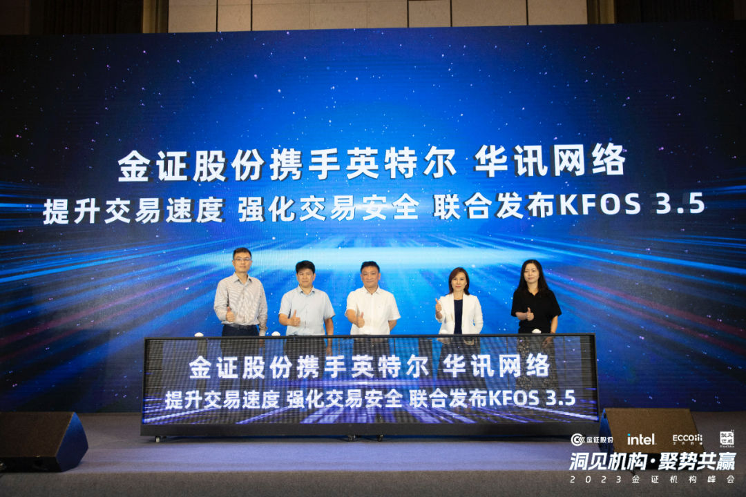 会上,金证股份与英特尔、华讯网络共同发布金证极速交易系统KFOS 3.5,持续强化交易安全,提升交易速度。