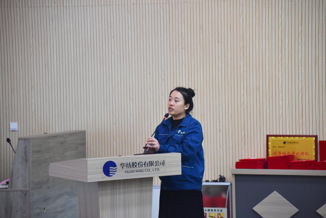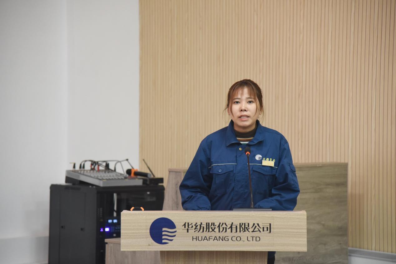 华纺股份工程技术研究院研发组组长刘晓敏围绕技术研发、协同发展,开源节流,降本增效、技术辅助保障工作、研究院软实力提升工作等四个方面就聚力技术创新,支撑公司高质量发展进行了汇报交流。