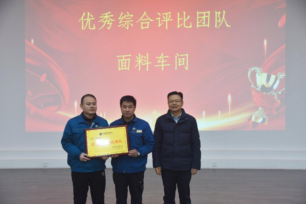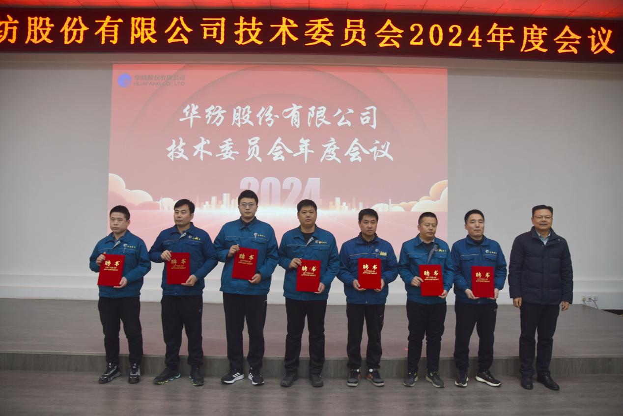 华纺股份在全面总结2023年技术工作的基础上,对42名优秀技术人员以及1个优秀综合评比团队进行了表彰,向7名工程师主任代表、工程师代表、技术员代表颁发了聘书。