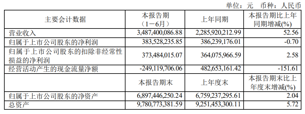 2022上半年,宁夏建材实现营业收入34.87亿元,较上年同期增加52.56%;营业成本28.57亿元,较上年同期增加74.41%;营业利润4.86亿元,较上年同期减少1.98%;归属于母公司股东的净利润3.84亿元,较上年同期减少0.70%。